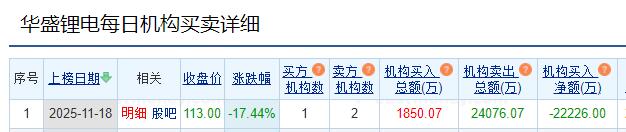中国经济网北京11月18日电 华盛锂电(688353)今日收盘报113.00元,跌17.44%。龙虎榜数据显示,华盛锂电池采购量前五名的企业中,有一家机构独占一席。华盛锂电池销量最大的五家企业中,有两家机构独占席位。据统计,今天发动机座销售的华盛锂电池净值为22226万元。